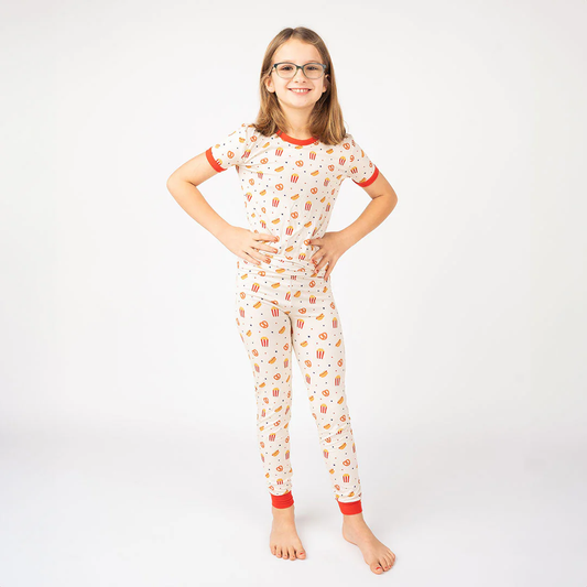 Here For the Snacks Two-Piece Bamboo Short Sleeve Kids Pajama Pants Set