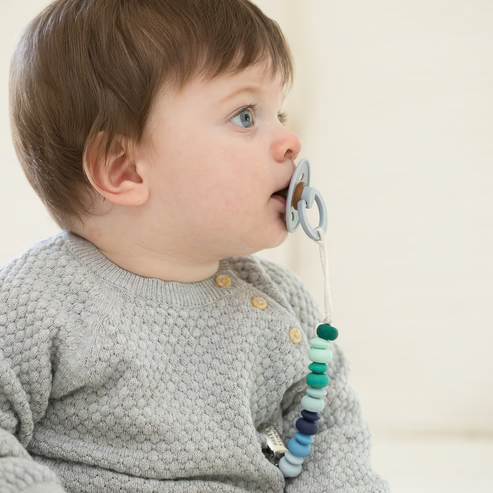 Never lose a pacifier again and look good while doing it. Our silicone pacifier clips are easy to mix and match with any outfit and the silicone beads create a clean, modern look. They work with any pacifier and keep them close, clean and most importantly, off the floor. Designed with a stainless steel clip that makes the entire product dishwasher safe, you can really clean these little darlings. In over 15 color options, our paci clips are what all the babies are wearing this season!