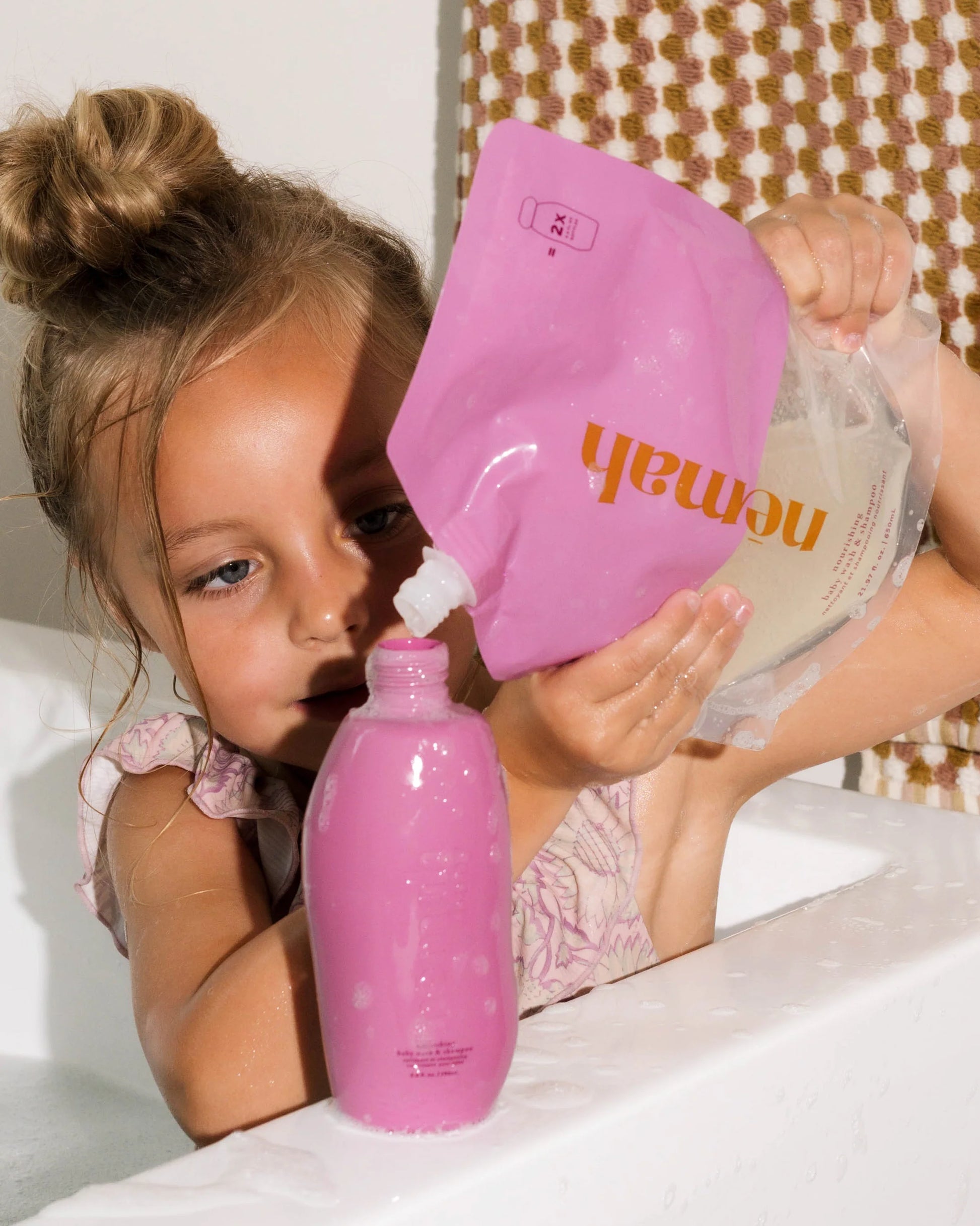 Stock up with a refill of our on our plant-derived wash & shampoo is specifically designed to cleanse & nourish the most delicate skin and leave hair soft and tangle-free. This mild, tear-free formula is infused with a light, all-natural scent to leave your babies skin and hair smelling fresh and clean.