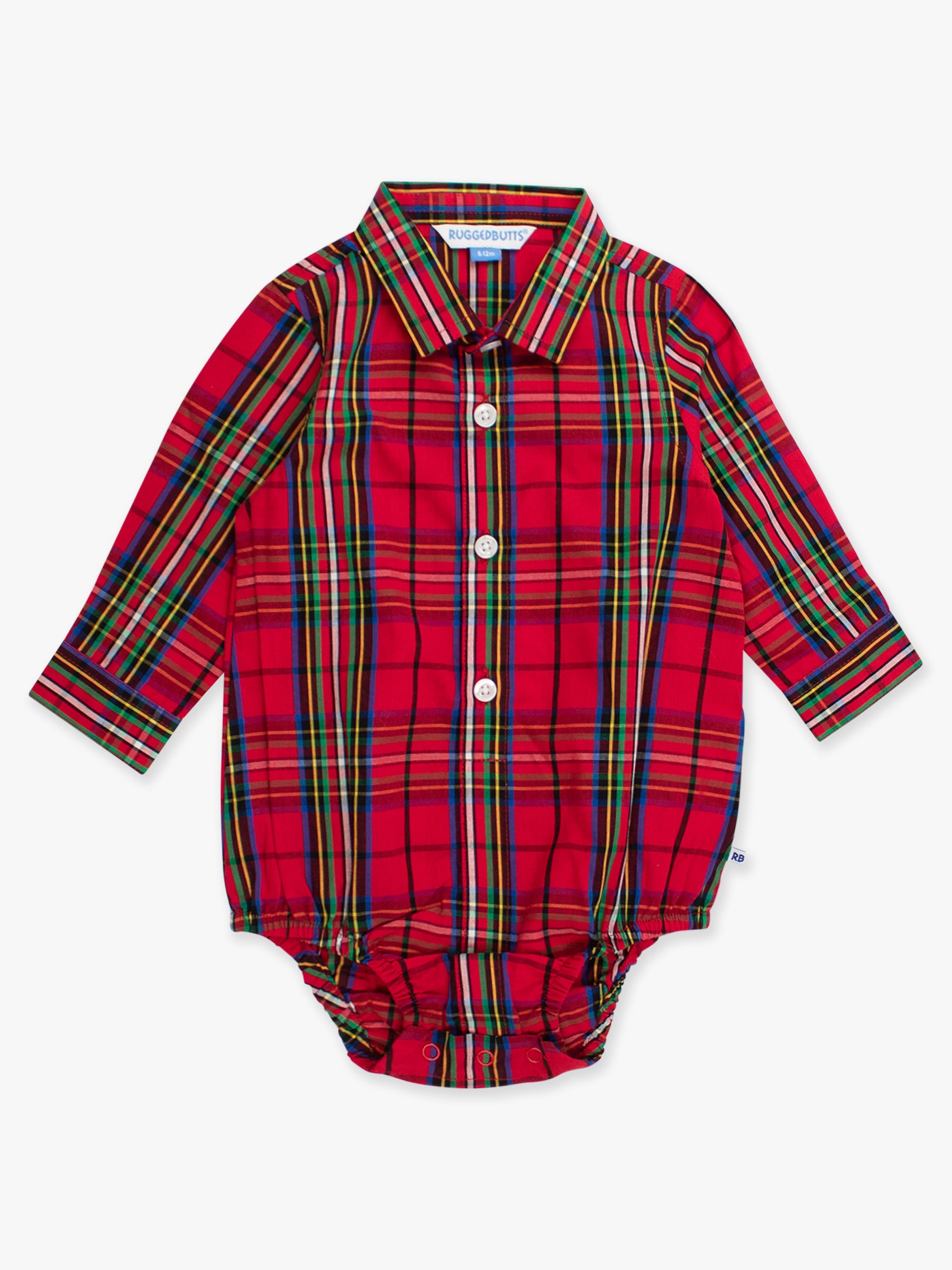 Perfect for Christmas and staying cozy during the winter holiday season! Your little man will be looking spiffy as ever in this button down bodysuit. He'll stand out on his own, but to add an extra touch, this bodysuit has the option of roll tab sleeve cuffs to keep him styled, cool and comfortable. Snaps at the legs make changing a breeze!
