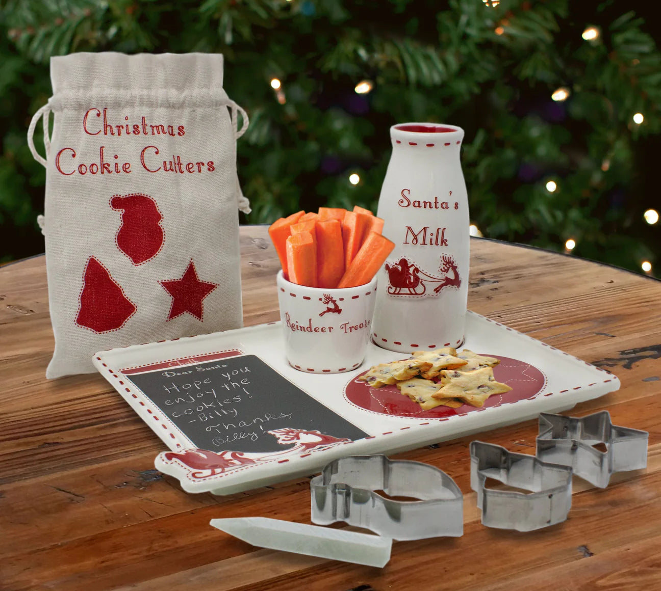 Start a Christmas tradition with this enchanting set. Plate has a chalkboard center so you can leave a message for Santa (and he can write back). Set includes a non-toxic soapstone chalk and cookie cutters. They're all so charming you can bring them out early as decorations and use the plate to count down the days until Christmas.